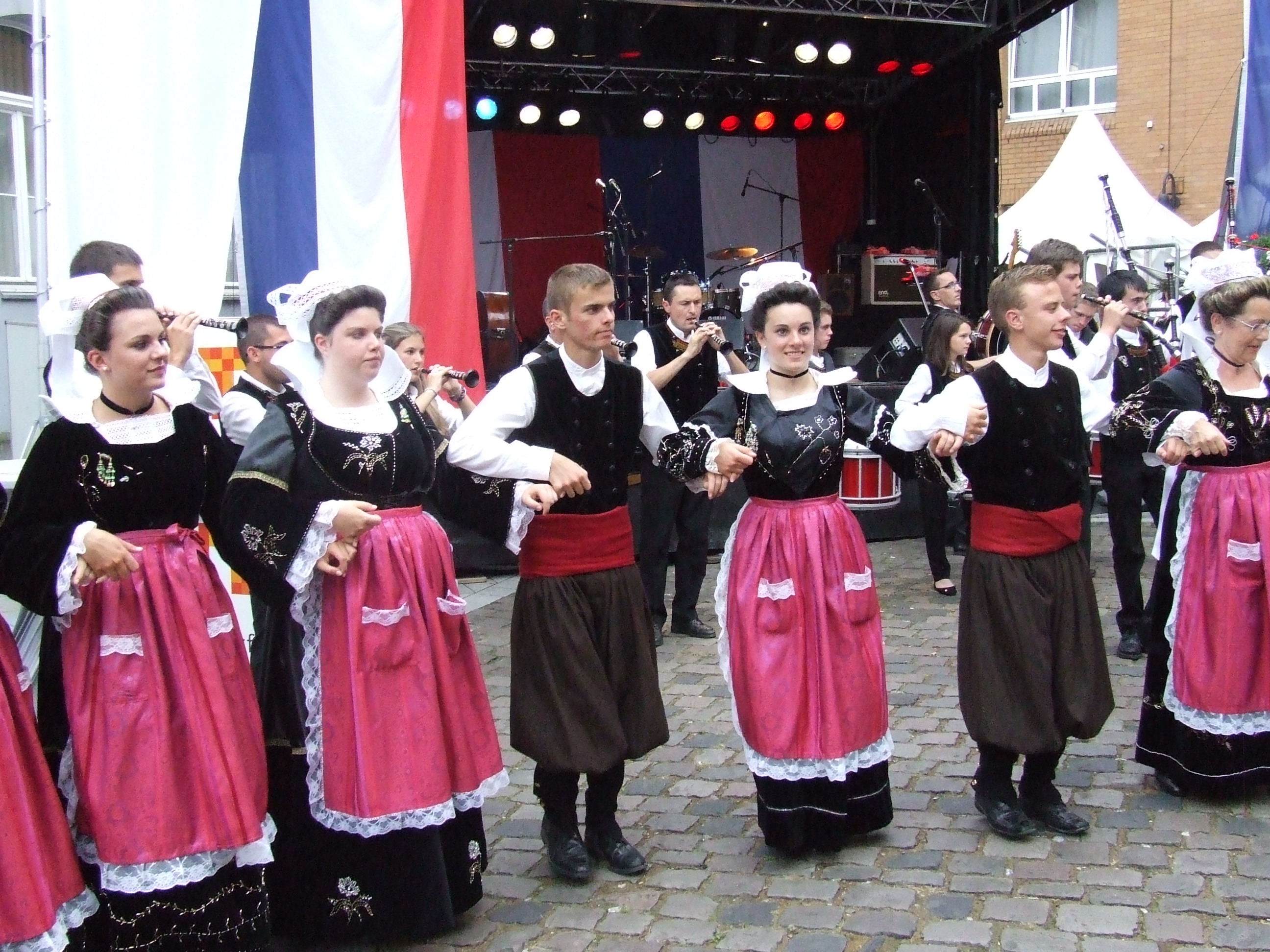 Rund 40 Franzosen sind in Meerbusch von 10. bis 12. Juli und nehmen an Düsseldorfer Frankreichfest teil. Die Gruppe besteht u.a. aus Tänzern und Musikern der Folklorgruppen von Fouesnant. Es sind viele junge Leute dabei, teilweise ab 13, 16, 17. Aber auch zwanzigjährige. Es sind nur zwei Nächte und die Gäste sind tagsüber zum Fest, da sie Musik machen und in Trachten tanzen.