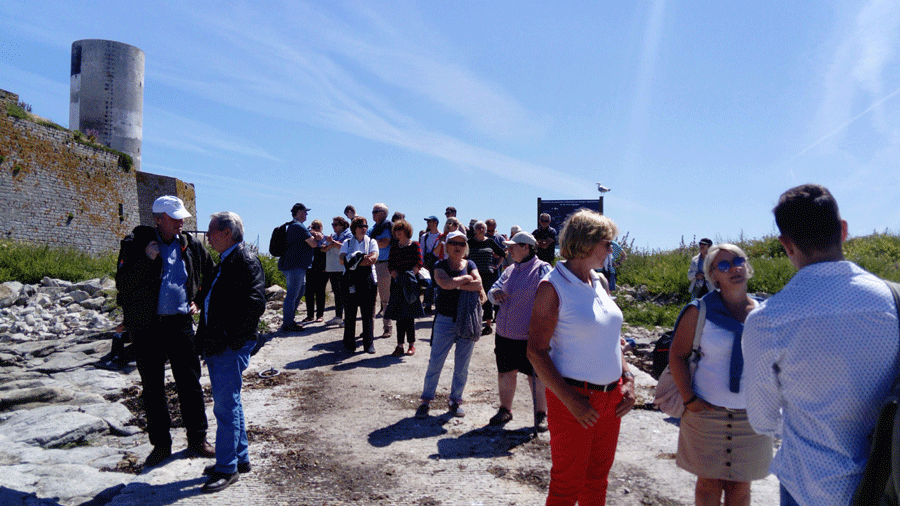 Donnerstagmorgen ging es Richtung Glénan-Insel unter dem Nebel, der den Landschaften einen ungewöhnlichen Ton gab. Umso schöner war die Entdeckung des Archipels, als die Sonne kam. Nach einem Picknick auf Saint Nicolas Insel, einem kleinen Spaziergang um die Insel, badeten noch die Mutigsten. Nach einer kurzen Überfahrt landeten wir auf die Festung von Fort Cigogne, die wir besichtigen durften. Bürgermeister Roger Le Goff gab viele Erklärungen zu den Einrichtungen und dem Energie- und Umweltlabor, aus denen dieses große Projekt besteht, das unsere deutschen Freunde sehr interessierte. Dieser Besuch eröffnete Perspektiven für die Partnerschaft und wir diskutierten die Idee einer technischen und technologischen Zusammenarbeit zwischen den beiden Städten.