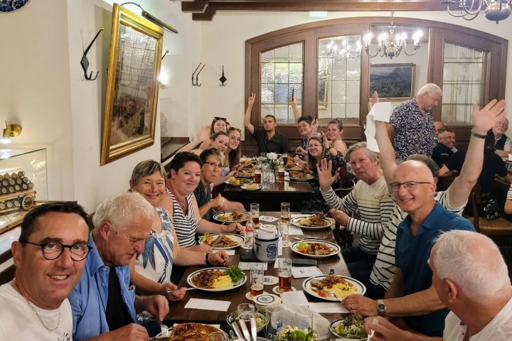Der Abend wurde mit einem typischen Essen in der Schuhmacher-Brauerei Zum goldenen Kessel fortgesetzt, wo mehr als 70 Franzosen und Deutsche für Stimmung sorgten.