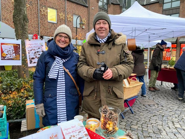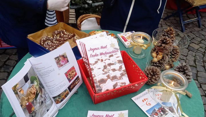 Un stand bien achalandé de spécialités arrivées tout droit de Meerbusch : Altbier, Glühwein et un large choix de biscuits de Noël. Les Stollen confectionnés par la boulangerie Puppe ont très vite été écoulés.